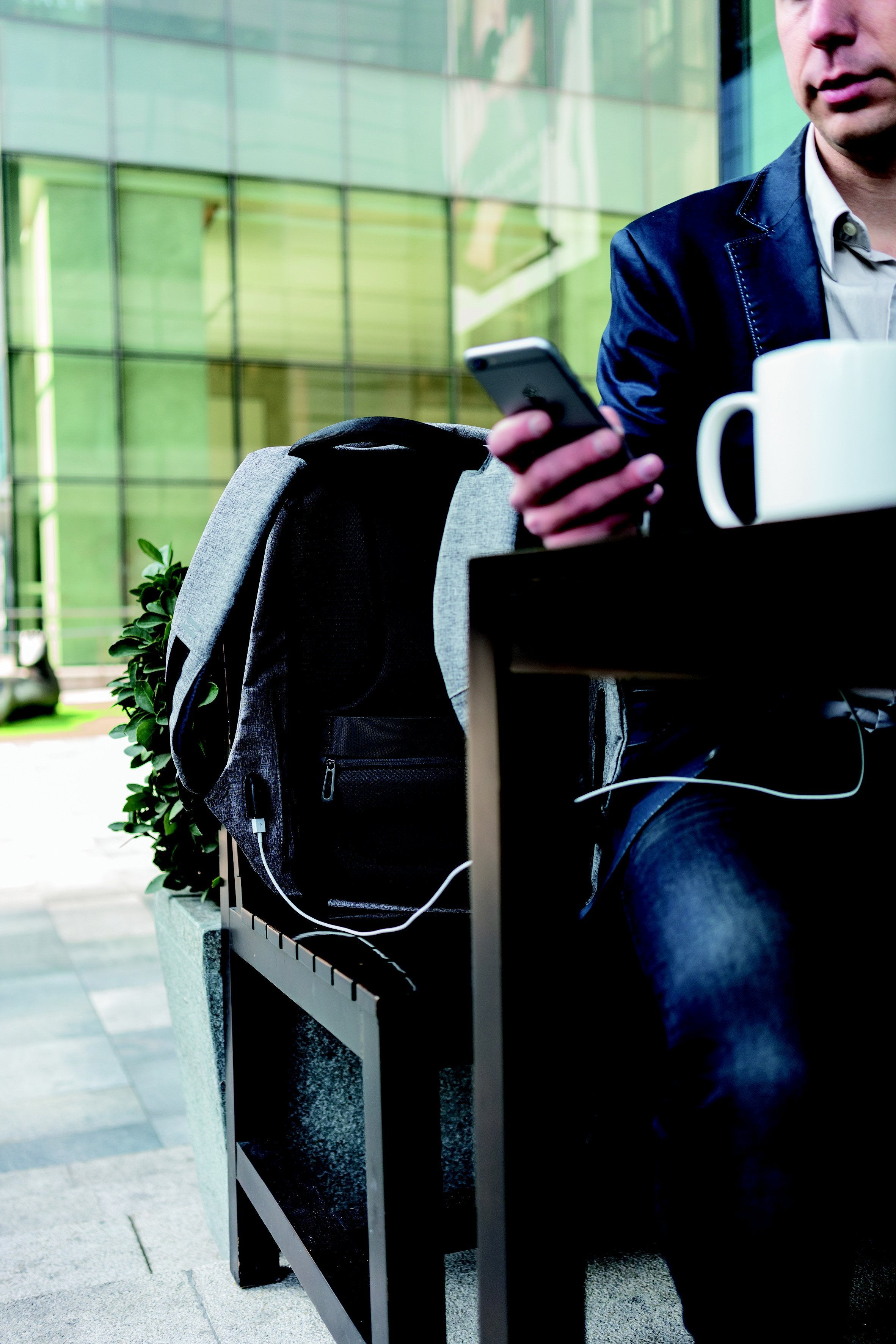 Besides being the safest backpack it is also the the most convenient backpack with features such as: an integrated USB charging port, weight balance, water repellent fabric, illuminating safety strips and luggage strap.